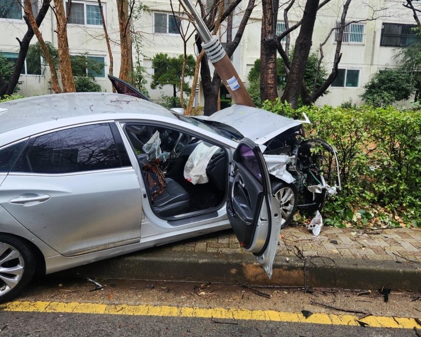 12일 해운대경찰서에 따르면 이날 오전 11시 44분께 부산 해운대구 한 도로에서 달리던 그랜저 승용차가 횡단보도 부근을 건너던 보행자를 친 뒤 다른 차량 3대와 가로등을 잇달아 들이받고 멈춰 섰다.