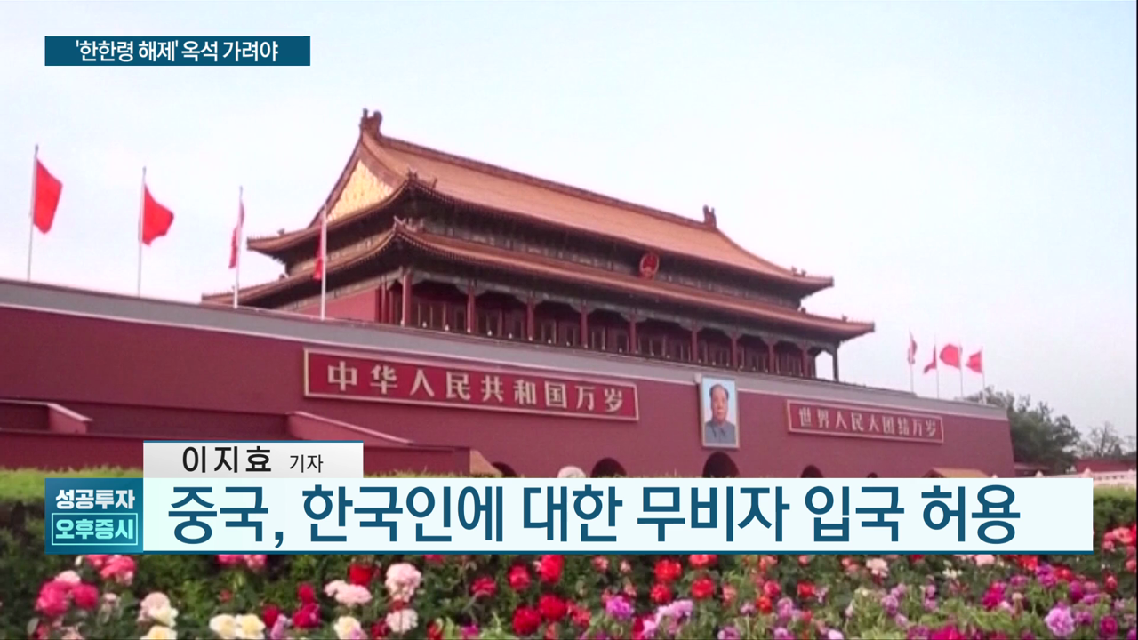 중국이 한국에 무비자 입국을 허용한 건데요. 한국을 무비자 대상에 포함한 것은 처음이었습니다.