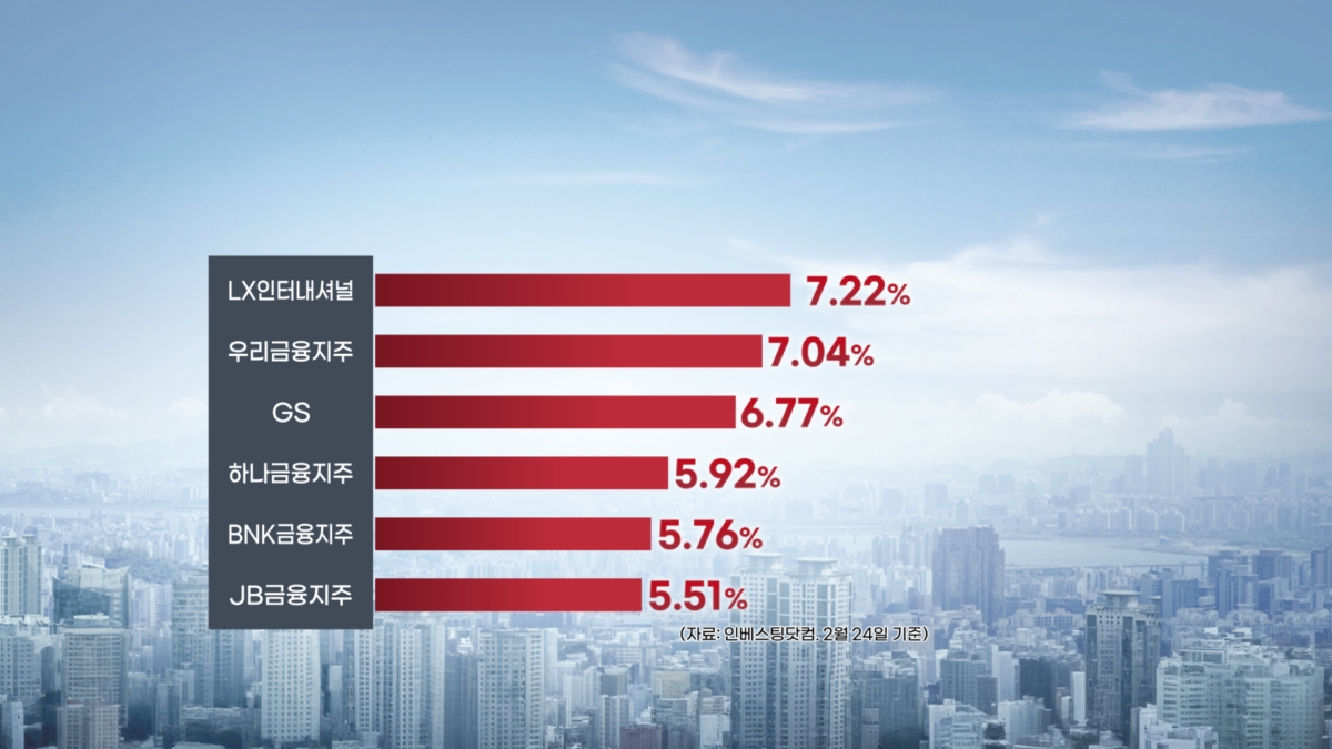 오늘 기준으로 가장 높은 배당 수익률이 기대되는 곳은 LX인터내셔널입니다.