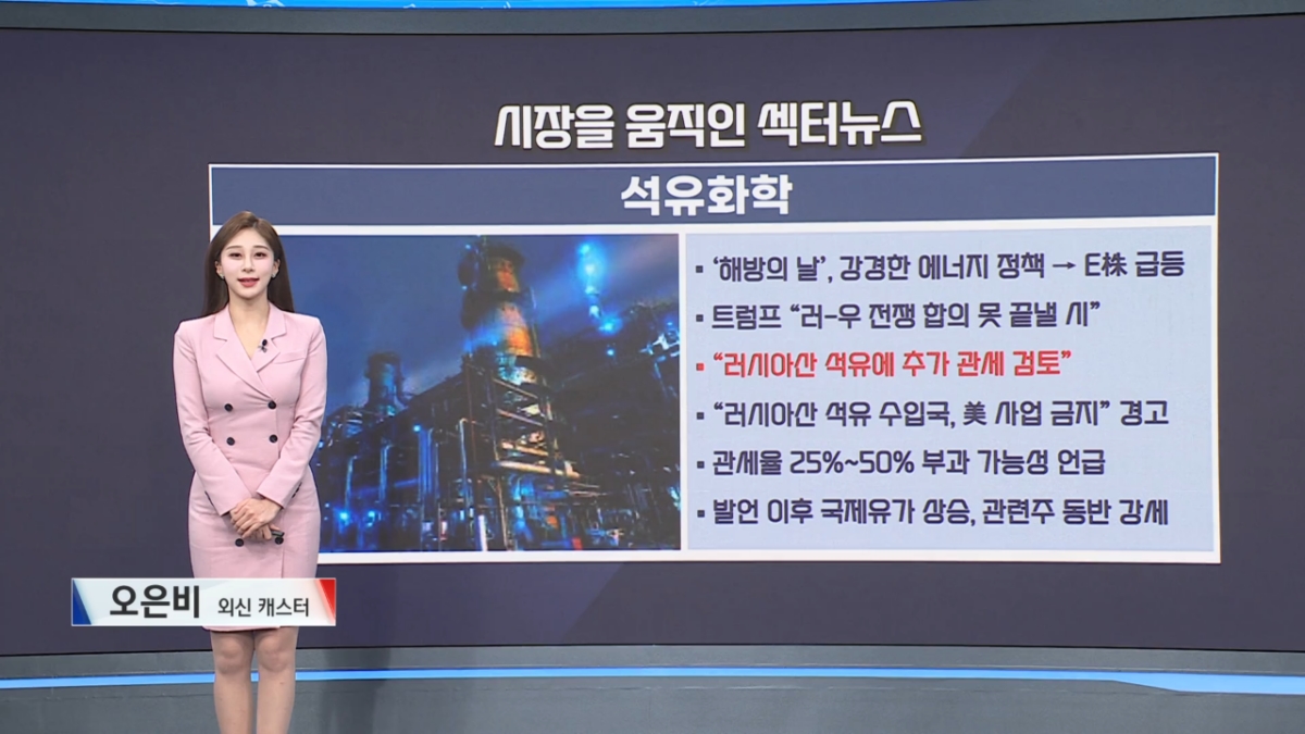'해방의 날'로 불리는 시점이 다가오고, 트럼프 행정부의 강경한 에너지 정책까지 힘입어 석유화학 관련 종목들이 힘입어 주목받고 있습니다. 여기에 더불어서 트럼프 대통령이 일요일 새벽 NBC 뉴스와의 전화 인터뷰에서 "러시아와 우크라이나 전쟁을 끝내는 데 합의하지 못하고, 그 원인이 러시아에 있다고 생각되면 러시아산 석유에 추가 관세를 부과하겠다"고 말했습니다. 그는 "러시아산 석유를 사는 나라는 미국에서 사업을 할 수 없게 만들 것이며, 러시아산 석유에는 25%에서 많게는 50%까지 높은 관세를 매기겠다"고 강조했습니다. 이로인해 국제유가가 오름세를 보였고, 석유화학주들이 강세를 나타냈습니다.