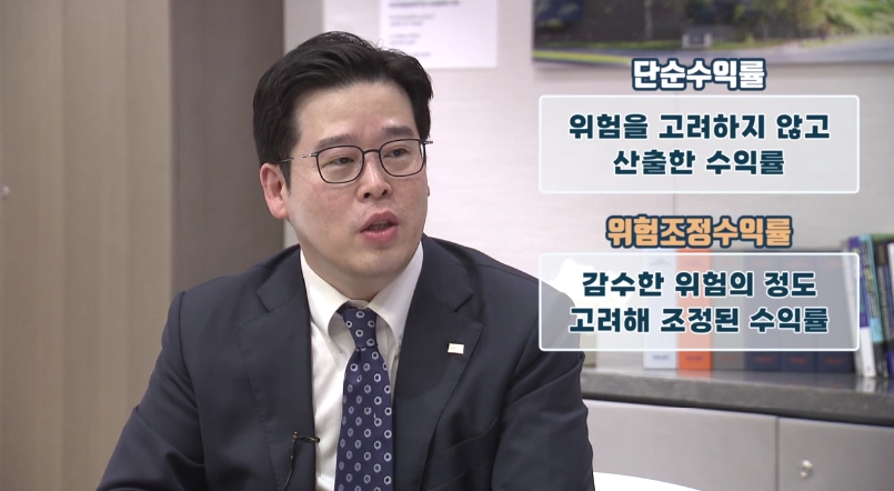 위험조정수익률을 같이 보시기를 추천드리고 있습니다. 위험조정 수익률이라는 것은 동일한 위험 내에서 어느 정도의 수익을 산출했는지를 나타내는 지표인데요. 여기서 위험은 변동성을 뜻하고 있습니다.
