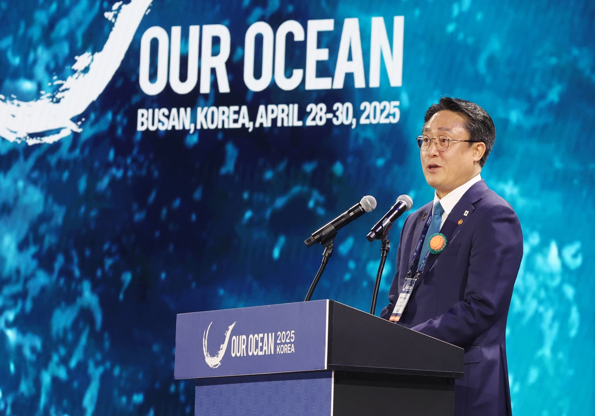 강도형 해양수산부 장관은 29일 "풍요의 바다는 수온이 상승하고 해양생태계가 훼손되고 있다"며 "아워오션 콘퍼런스(OOC·Our Ocean Conference)에서 거대한 파도를 만들어 변화와 행동을 끌어내고 새로운 미래를 가져오길 기대한다"고 말했다.