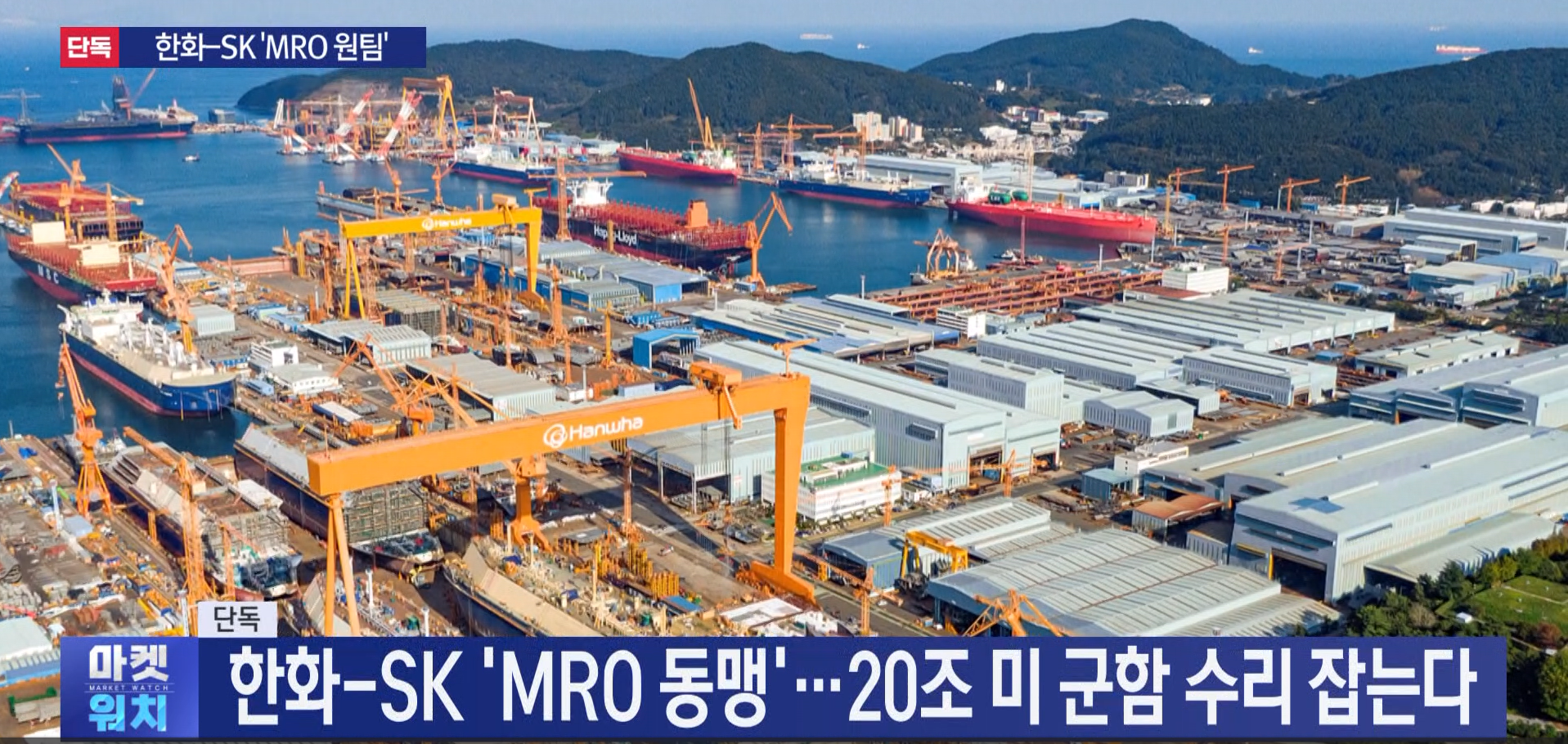 한화와 SK가 20조 원 규모의 미국 해군 군함 MRO 시장에서 수주를 따내기 위해 전격적으로 동맹을 맺기로 했습니다.