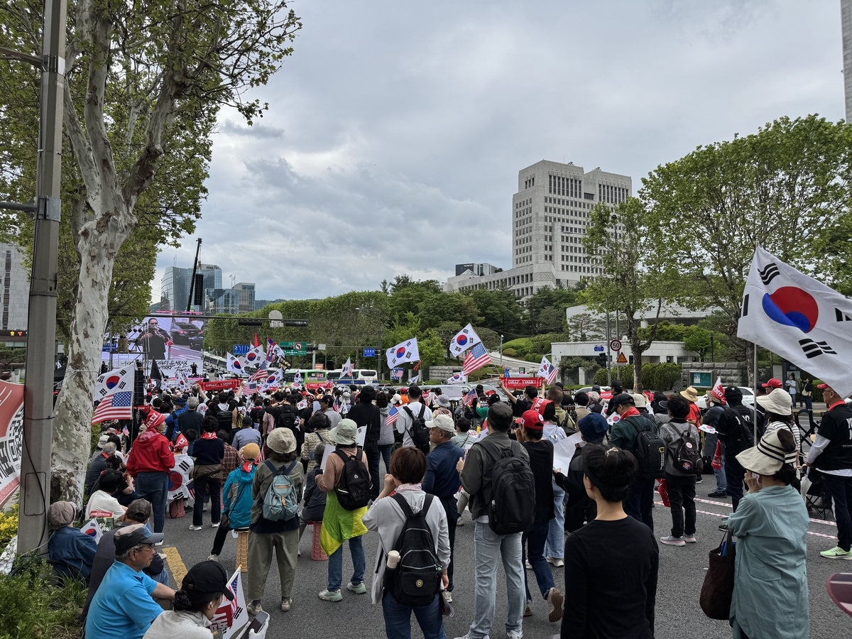 오후 2시 서울중앙지검 서문 앞 반포대로에선 벨라도 등 보수 유튜버가 윤 전 대통령 지지 집회를 열었다. 경찰 비공식 추산으로 3천500명이 참가했다.