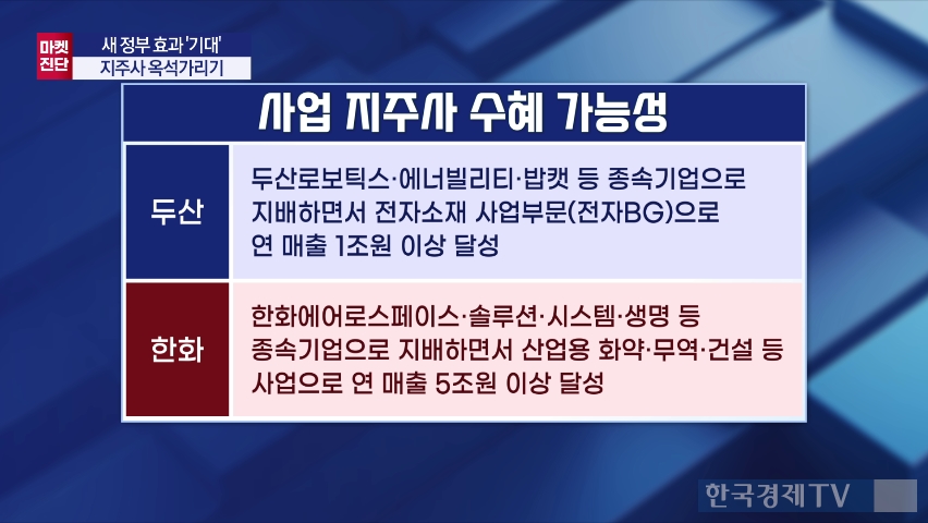 - 사업을 하고 있는 지주사에 주목할 필요가 있으며, 예로는 두산과 한화를 들 수 있음.