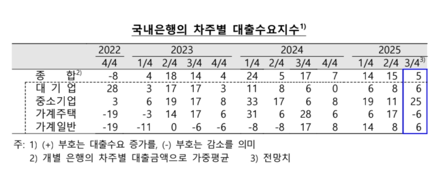 3분기 대출수요는 기업대출, 가계일반에서 증가할 것으로 예상되지만 가계주택 관련 대출에 대한 수요는 줄어들 것으로 전망된다.