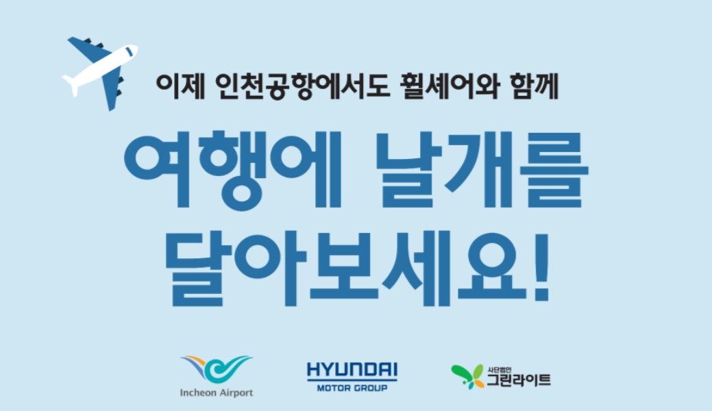 현대차그룹이 16일 인천국제공항 제1여객터미널에서 이항수 현대차그룹 부사장, 이학재 인천공항공사 사장, 이재강 회장 사단법인 그린라이트 등 주요 관계자들이 참석한 가운데 ‘인천공항 교통약자 전동화 휠체어 대여소 개소식’을 열었다고 이날 밝혔다.