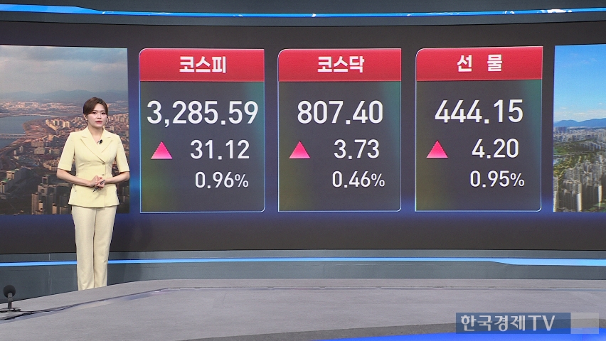 - 코스피는 0.9% 올라서 3285선, 코스닥은 0.5%대 빨간불 807선을 기록함, 이후 약세 전환