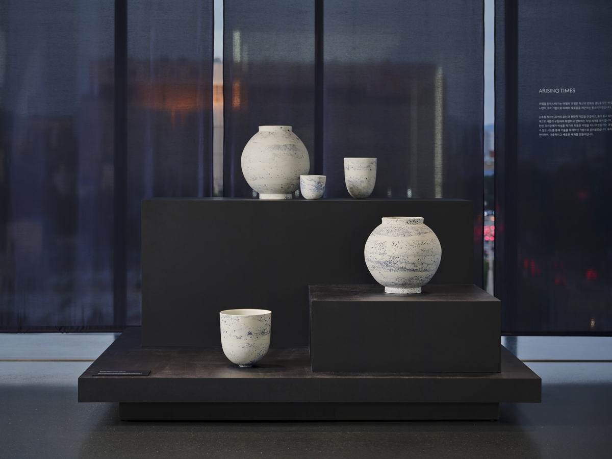 두 번째 섹션 'Arising Time (새로운 미래로 밝아오는 빛의 시간)'은 땅의 물성과 우주의 시간을 현대적으로 재해석한 김호정 작가의 도자작품과 블로잉 기법을 활용해 유리 속 무한히 확장하는 세계를 표현한 박성훈 작가의 유리작품으로 구성됐다.