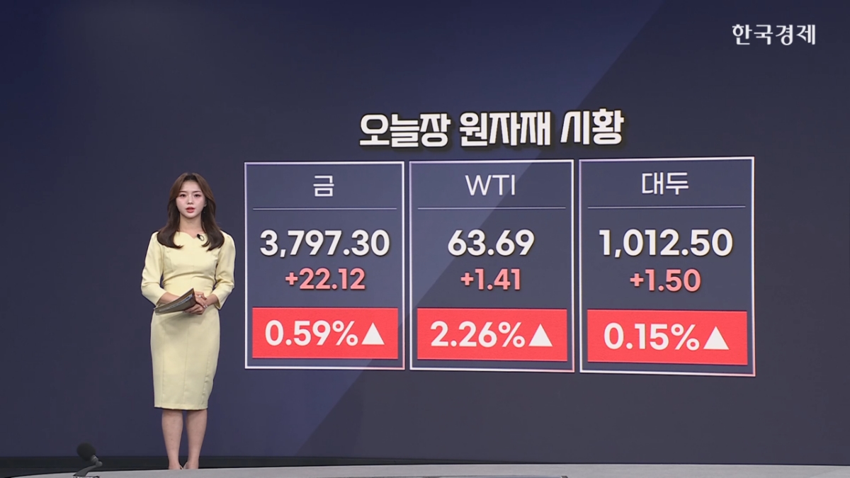 네, 원자재 시황도 살펴보겠습니다. 5시 수치를 기준으로 하고 있고요. 오늘장 눈에 띄었던 원자재 이슈들 보면, 금은 멈출 줄 모르는 상승세를 이어가고 있습니다. 오늘장에서도 0.5% 올랐습니다. 국제유가는 이라크 쿠르드 지역 원유 수출 재개에 차질이 생기면서 2% 상승, 밀 선물은 공급 불안 신호가 포착되며 2% 올랐습니다.