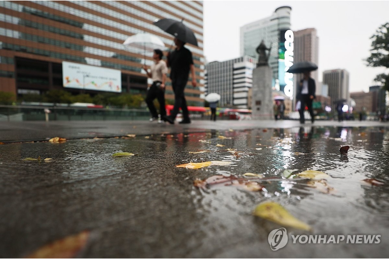 15일에도 비가 이어져 당분간 푸른 가을 하늘 보기가 어렵겠다. 서쪽에서 또 기압골이 접근해오고 있어서다.