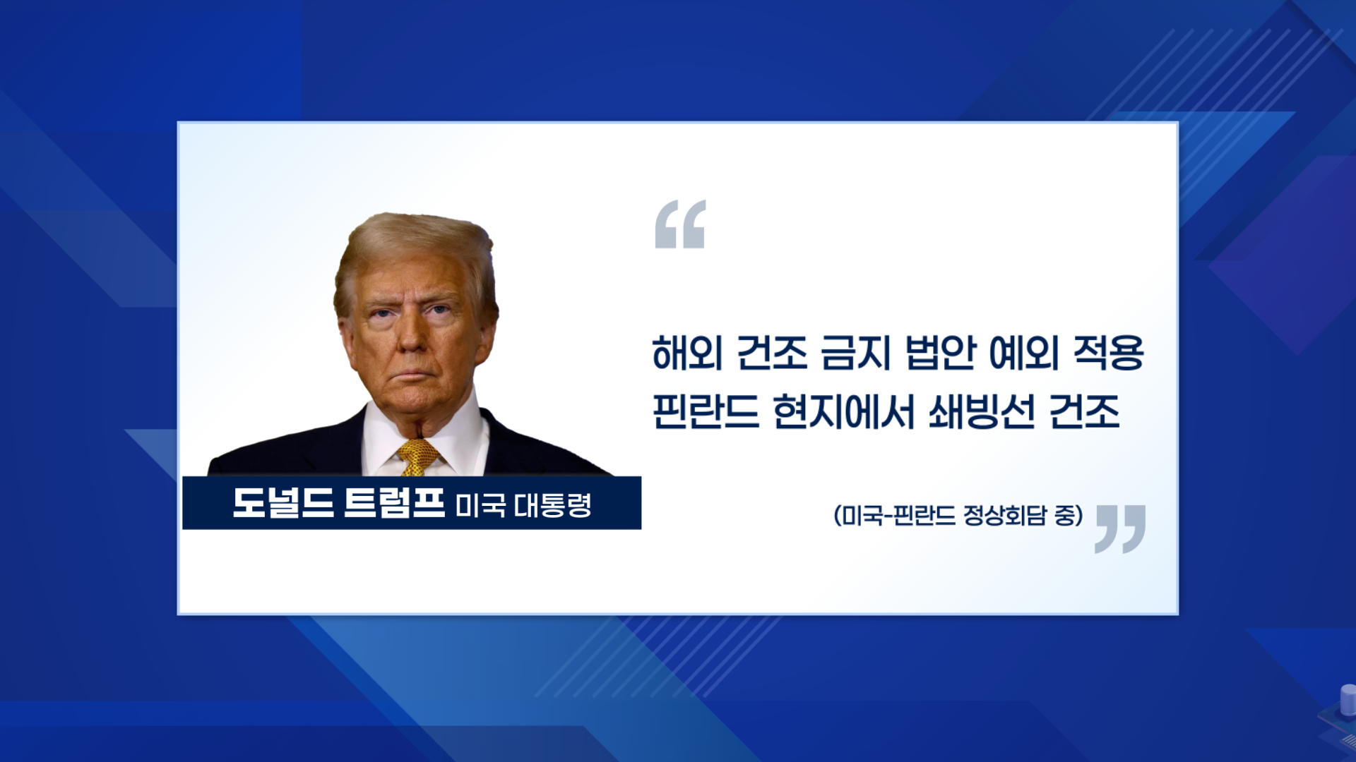 핀란드로부터 11척의 쇄빙선을 사기로 했는데 의회에 7척은 미국에서 4척은 핀란드에서 만들겠다고 통보하며 길을 연 겁니다.