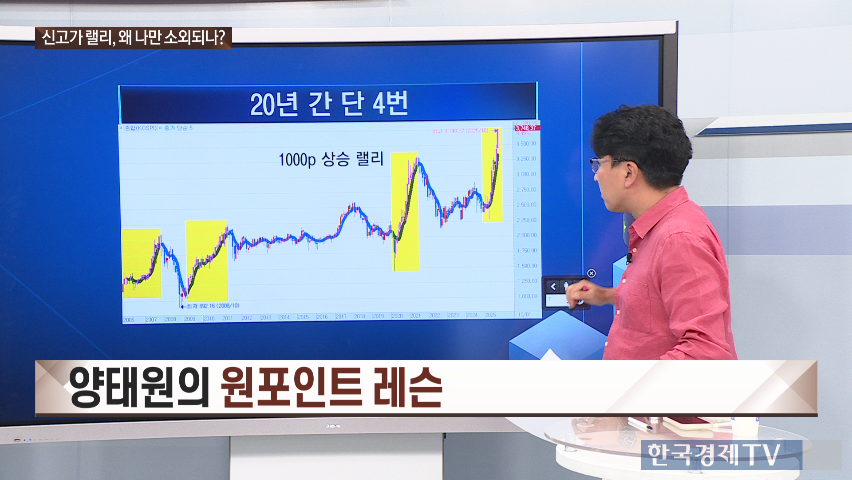 양 대표는 “지수가 랠리를 펼치고 있는데도 불구하고 상승 종목보다 하락 종목이 더 많다는 건 결국 소외 시장이라는 뜻”이라며 “20년간 1,000포인트 이상 상승한 랠리가 네 번 있었지만 지금이 가장 까다롭고 어려운 구간”이라고 진단했다.