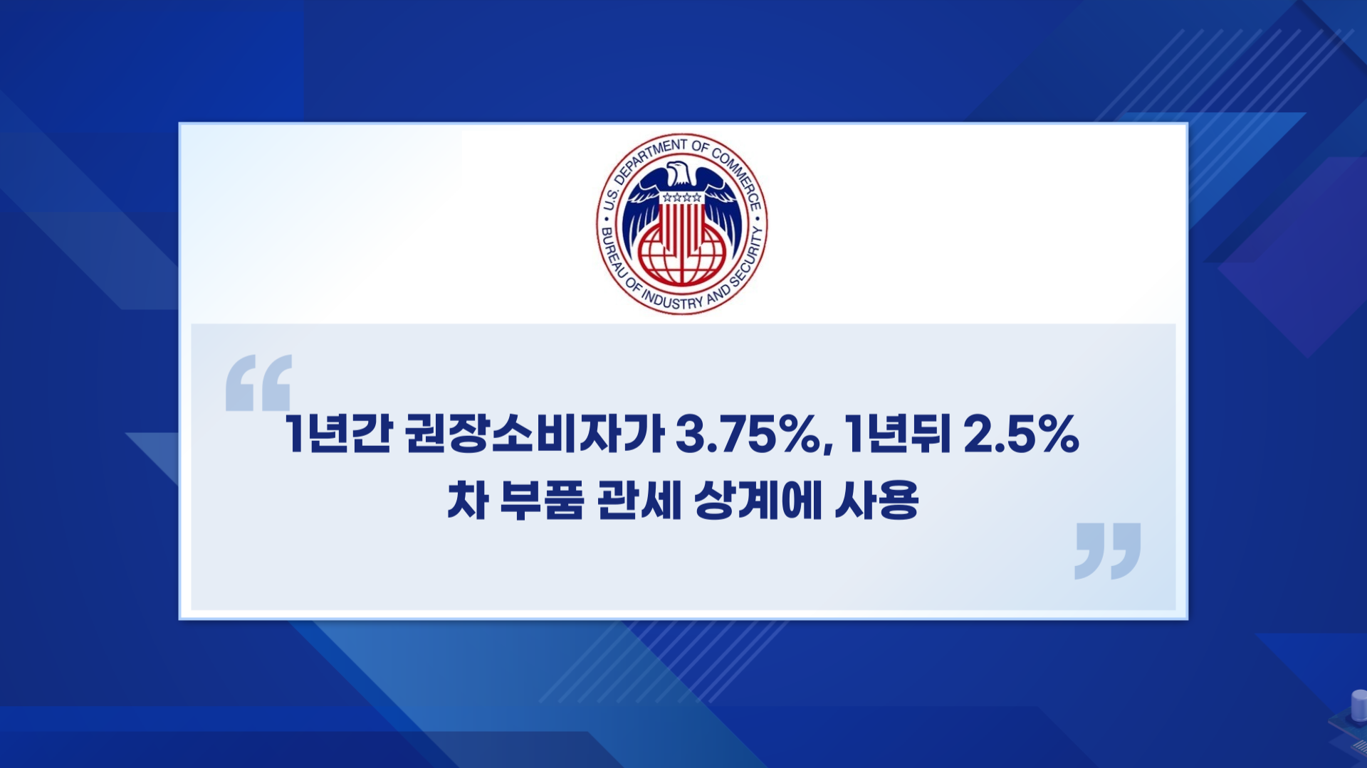 이의 일환으로 미 상무부는 지난 4월부터 1년 동안 제조사가 조립한 차의 가격의 3.75% 금액을 부품 관세 상계에 쓸 수 있도록 하고 있습니다.