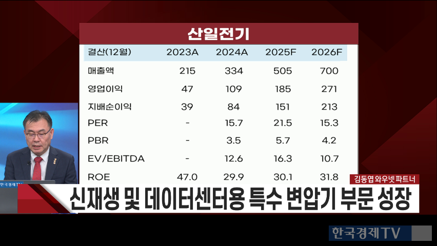 김동엽 대표는 첫 번째 종목으로 ▲산일전기(062040)를 꼽았다. 그는 “특수변압기 중심의 실적 성장세가 이어지고 있으며, 데이터센터 증설과 친환경 전력 인프라 투자 확대가 구조적 수요를 만든다”고 분석했다. 이어 “기술적으로 20일선을 타고 상승하는 흐름을 보이며, 다른 전력 관련주보다 안정적인 진입 타이밍을 제공한다”고 진단했다.