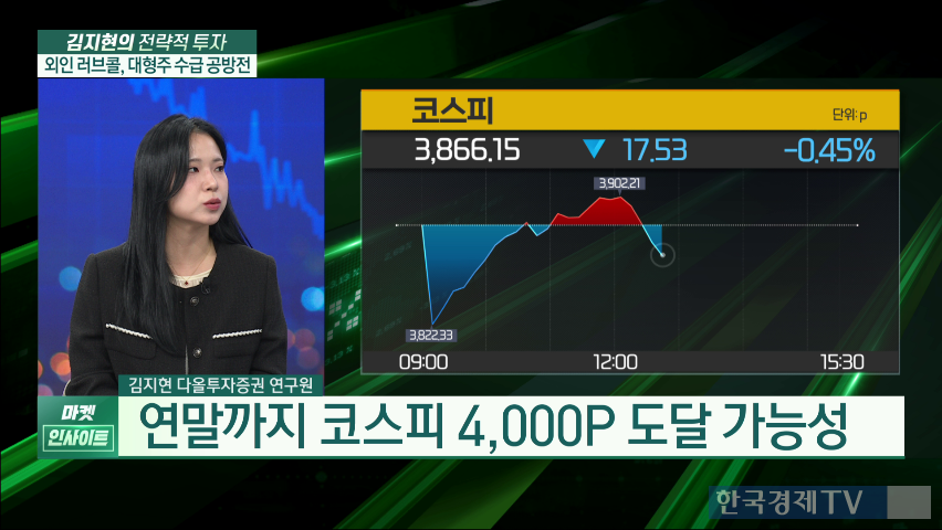 ● "반도체·2차전지 대형주 투자 유리...코스피 연말 4천 포인트 가능성" 코스피 지수가 연일 랠리를 이어가며 상승장을 연출하는 가운데, 전문가들은 테슬라의 실적 발표와 함께 여러 시장 전략을 논의했다. 김지현 다올투자증권 연구원은 테슬라의 매출이 사상 최대를 기록했으나 순이익이 급감해 시간 외 거래에서 2~3% 하락했다고 분석했다.