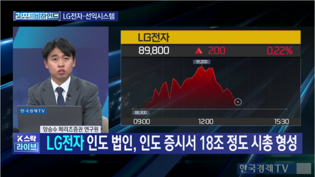 양승수 메리츠증권 연구원은 "LG전자 인도 법인 IPO가 역대급 흥행에 성공하며 가전도 성장 산업이 될 수 있음을 보여줬다"고 평가했다.