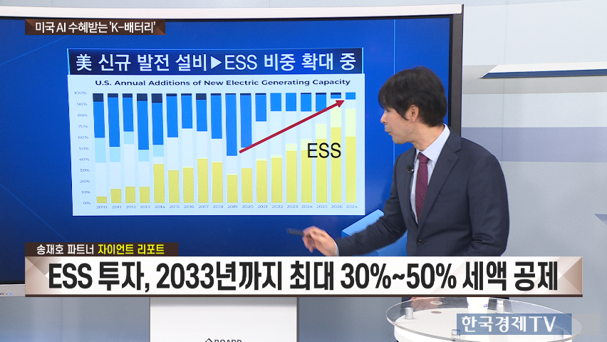 그는 “AI 인프라 확산으로 전력 수요가 증가하며 ESS(에너지 저장장치) 산업의 성장성이 두드러지고 있다”며 “ESS 배터리의 핵심 소재인 양극재 관련 기업들이 직접적인 수혜를 받고 있다”고 설명했다. 이어 “LG에너지솔루션과 삼성SDI는 세액공제 혜택을 통해 2026년 배터리 매출이 30% 이상 확대될 전망”이라고 덧붙였다.