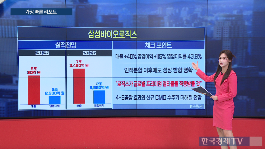● 삼성바이오로직스 · 삼성SDI 목표가 상향 [가장 빠른 리포트] 삼성바이오로직스의 목표가는 150만 원으로 상향 조정되었습니다. 3분기 매출은 전년 대비 40%, 영업이익은 115% 성장했으며, 영업이익률은 43.9%를 기록했습니다. 특히 4공장까지 풀 가동에 근접했고 5공장 램프업도 안정화 단계에 진입했습니다. 인적 분할 이후에도 성장 방향은 명확합니다. 분할 후 삼성바이오로직스는 퓨어 CDMO 플레이어로 전환되며 글로벌 경쟁사 론자 대비 매출 성장률과 이익률 모두 우위가 예상됩니다. KB증권은 삼성바이오로직스가 글로벌 프리미엄 멀티플을 적용받을 것으로 평가했습니다. 2026년까지의 성장 궤도는 더욱 가팔라질 전망입니다.