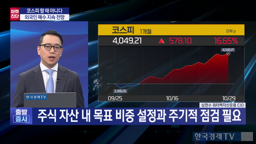 ● 핵심 포인트 - 전문가들은 시장의 변동성에 대응하기 위해 특정 국가의 주식 비중을 미리 설정하고 이에 따라 조정하는 방식을 추천함. - MSCI ACWI 지수를 참고해 미국 주식 비중을 50~70% 사이로 유지하는 것이 바람직하다고 제안함. - 젊은 투자자나 고정 수입이 있는 경우 집중 투자가 효과적일 수 있으나, 장기적으로는 계획된 자산 배분이 중요하다고 강조함. - 미국 3분기 GDP 성장률은 로이터 컨센서스에서 2.8%로 예측되지만, GDP NOW 모델은 3.9% 성장을 전망함. - 미국 기업 실적 발표 현황에서 86%의 기업이 시장 예상을 초과 달성했으며 이는 미국 증시의 강세를 뒷받침함. - 원화는 연초 대비 강세를 보이고 있으며, 외국인 투자자들은 여전히 한국 주식 매수에 관심을 보이고 있음. - 단기적인 외국인 매도는 추세적 변화보다는 일시적 현상으로 평가되며, 산업 호재와 정책 변화가 긍정적 영향을 미칠 것으로 기대됨.