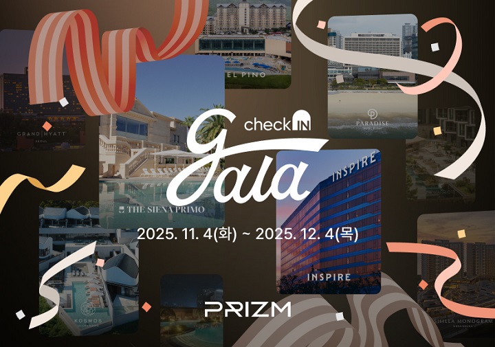 올해 5회차를 맞이한 체크인 갈라는 프리즘의 대표 프로그램으로, 엄선된 프리미엄 호텔을 차별화된 콘텐츠로 소개해 매회 폭발적인 반응을 얻고 있다. 이번 프로모션은 총 12곳의 최상급 호텔과 리조트를 최대 78% 할인된 파격가에 제공한다.