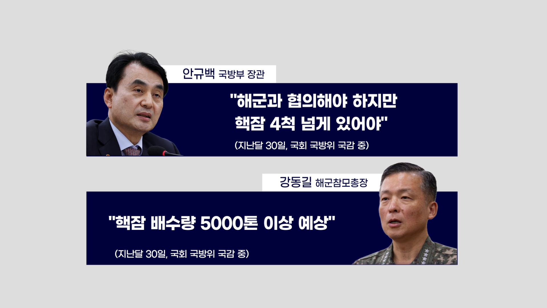 원종대 국방부 자원관리실장은 “2030년대에는 1번함이 진수할 것”이라고 말했고, 안규백 국방장관과 강동길 해군참모총장도 "2030년대 들어 5,000톤 급 핵 잠수함을 4척 넘게 전력화할 것"이라고 내다봤습니다.