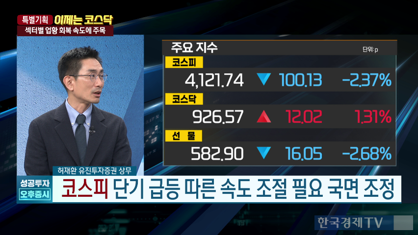 ● "코스피 자연스런 조정, 완만한 상승 전망...저평가주 관심 필요" [내일 전략] 코스피는 최근 급격한 상승 후 조정 국면에 접어들며 하락 마감했으나, 코스닥 중소형주는 바이오 및 소재·부품·장비(SV) 중심으로 강세를 보였습니다. 전문가들은 코스피가 연초 이후 70% 넘게 상승하면서 외국인 투자자들의 차익 실현 압력이 커지고 있으며, 이러한 조정은 자연스러운 현상이라고 평가했습니다.