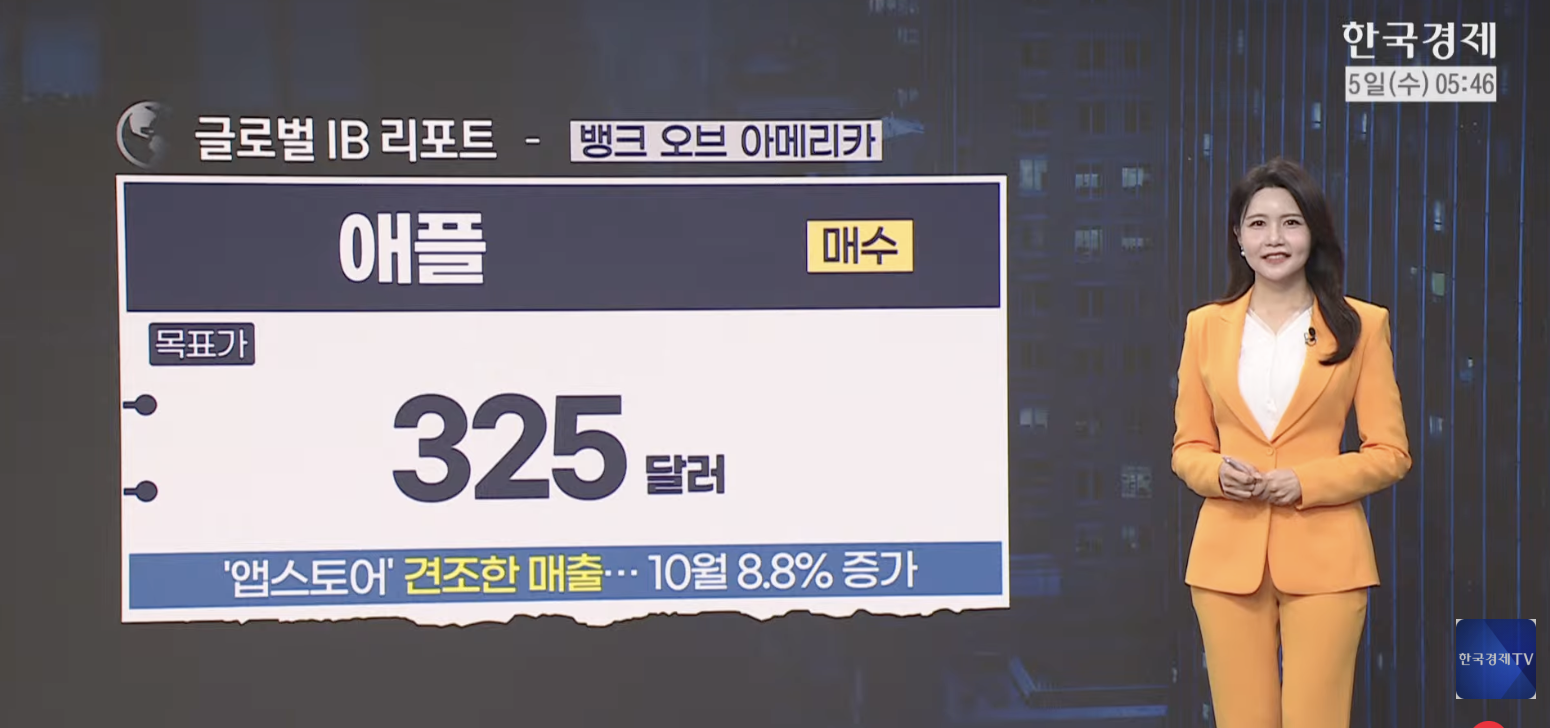 뱅크 오브 아메리카는 애플(AAPL)에 대해 '매수' 의견과 목표주가 325달러를 강력히 유지했습니다. 근거는 견조한 앱스토어 매출입니다. 10월 글로벌 앱스토어 매출이 전년 동기 대비 8.8% 증가했는데, 이건 앱 다운로드 증가율 0.4%를 크게 상회하는 수치입니다.