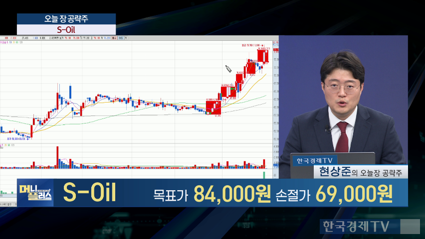 ● S-Oil · 명인제약 [5일 공략주] 현상준 파트너는 3분기 실적이 긍정적이며 정제 마진의 지속적 개선을 이유로 S-Oil을 추천했습니다. S-Oil의 8월 정제 마진은 5.8달러였지만 10월에는 10.8달러까지 상승했으며, 4분기 영업이익 또한 전년 동기 대비 약 100% 증가한 것으로 예상됩니다. 차트를 보면 주가가 꾸준히 상승 중이며, 1차 목표가는 8만 4천 원, 손절가는 6만 9천 원을 제시했습니다.