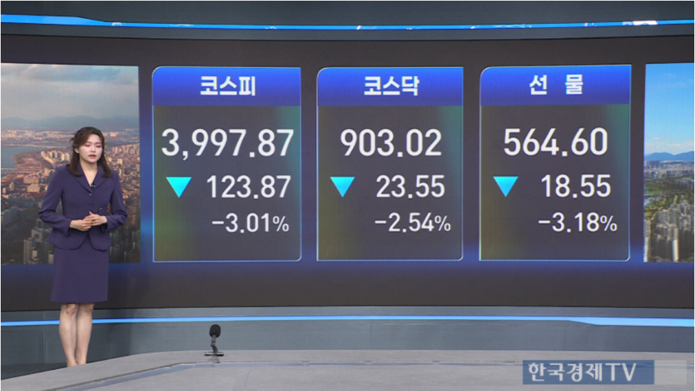 - 5일 코스피, 장 초반 4% 넘게 하락하며 4,000선 무너짐