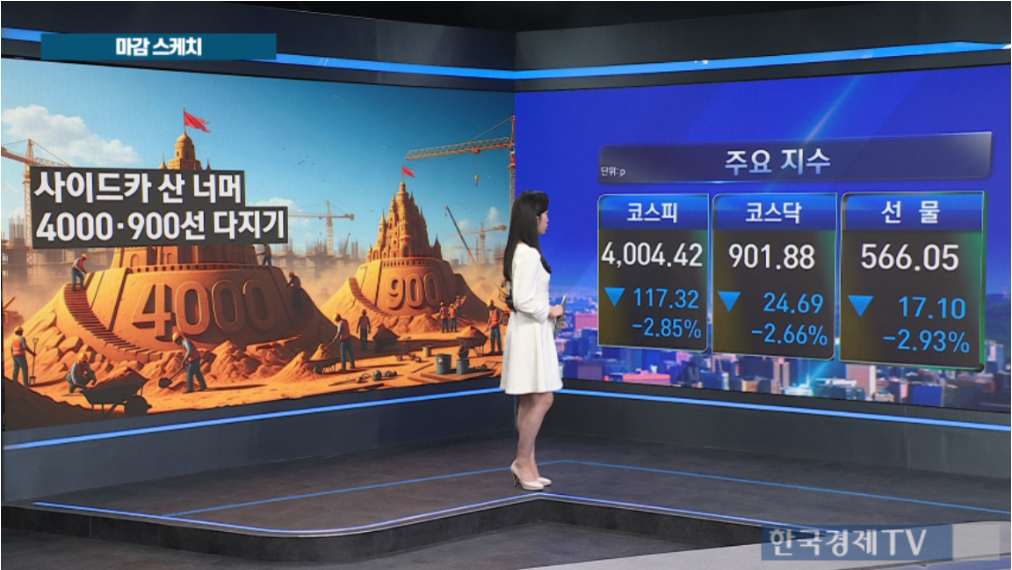 - 3조원 가까운 외인 매도세에 매도 사이드카 발동됐으며, 한때 3,900선 아래로 떨어짐.