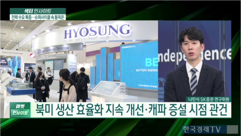 나 연구원은 "북미 매출 비중 확대와 생산 효율화가 이어질 경우 전체 이익률이 북미 법인 수준에 근접할 수 있다"며 "향후에도 북미 생산법인의 수익성 추이와 증설 시점을 핵심 체크 포인트로 보면서 효성중공업에 대한 중장기 투자 전략을 가져갈 필요가 있다"고 조언했다.