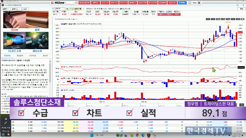 솔루스첨단소재는 북미 최초 전지박 생산공장을 내년 하반기에 완공할 예정이며, 경쟁업체 대비 빠른 시장 진입으로 중장기적인 수혜가 예상됩니다. 전지박은 2차 전지의 음극 집전체로 배터리 성능, 수명, 안전성을 결정하는 핵심 소재입니다. 중국산은 IRA와 최대 90%에 달하는 고율 관세로 미국 시장 진입이 막혀 있습니다. 경쟁 업체들도 북미 현지 공장 설립을 검토 중이지만 부지 확정부터 건설까지 기간이 최소 5년 이상 소요 예상, 한동안 북미 현지에서 전지박을 생산할 수 있는 기업은 솔루스첨단소재가 유일한 것으로 보여 중장기적인 수혜가 전망됩니다. 내년 상반기, 하반기 선반영을 받고 밸류 측면에서 준비해야 하는 종목이고 차트상으로도 바닥에서 나오는 현재 기관과 외국인이 물량이 들어옵니다. 내년 상반기를 원하시는 분들은 음봉 공략, 최대 저점에서 계속 준비하자라는 의견 드리도록 하겠습니다.