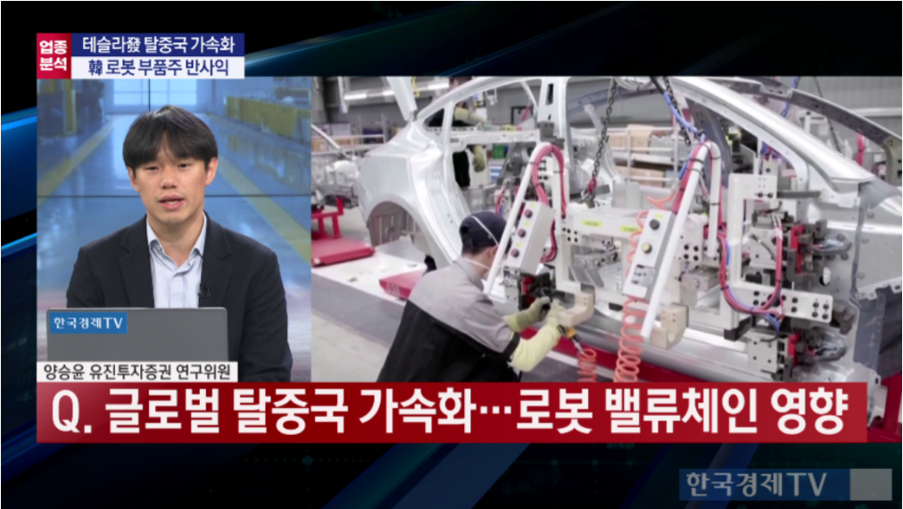 양승윤 유진투자증권 연구위원은 18일 한국경제TV에 출연해 "중국 로봇 기업들의 가장 큰 강점은 결국 가격 경쟁력이다"며 "내수 시장과 테슬라를 비롯한 수출 시장을 동시에 확보하면서 물량을 빠르게 늘려 규모의 경제 효과를 누리고 있다"고 진단했다.