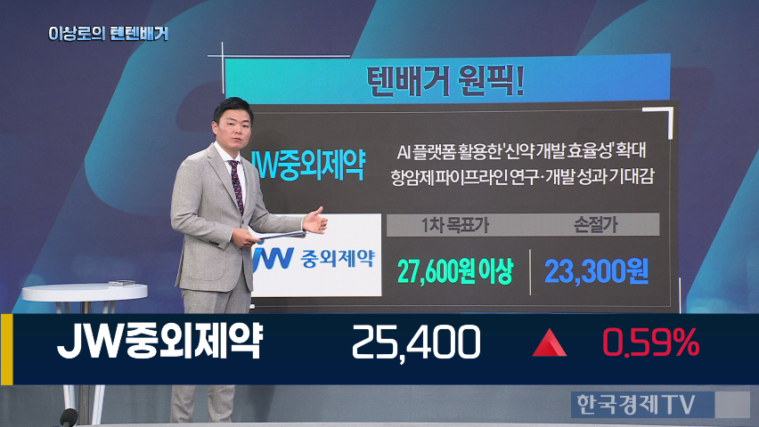 JW중외제약은 AI 플랫폼을 활용한 항암 파이프라인 강화로 주가 상승 가능성이 큽니다. 1차 목표가는 27,600원, 손절가는 23,300원으로 제시되었습니다.