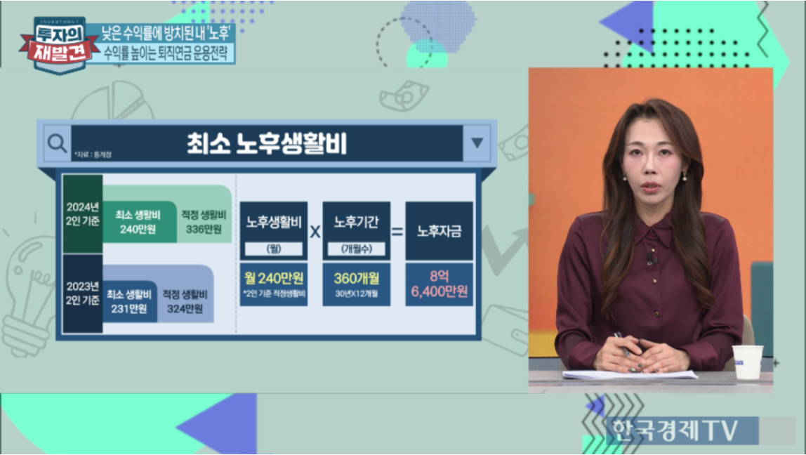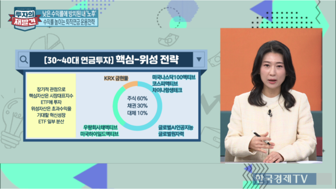 문제는 최근 10년간 퇴직연금의 연평균 수익률이 2%대에 머문 반면, 동일 기간 평균 임금상승률은 약 3%대, 국민연금 수익률은 6%대였다는 점입니다. 이처럼 낮은 수익률의 주요 원인은 가입자들의 소극적인 운용과 투자 관심 부족에 있습니다. 21일 방송된 <투자의 재발견>에서 문은정 한국투자증권 연금컨설팅부 팀장, 윤나연 한국투자증권 연금컨설팅부 팀장은 퇴직연금 투자전략의 필요성을 강조하였습니다.