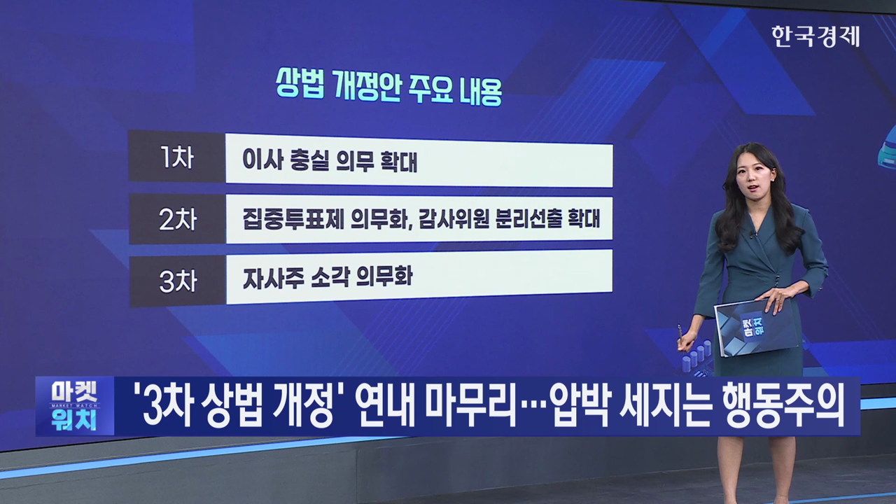 이사 충실 의무 대상을 주주로 확대하는 1차 개정안, 감사위원 분리선출 확대 등을 담은 2차 개정안이 통과한 데 더해 3차 개정안이 추진되는 겁니다.