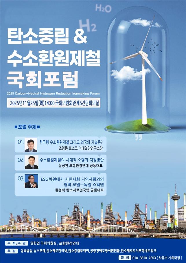 이번 포럼은 포항환경연대와 더불어민주당 권향엽 의원이 주최하였으며, 기후위기와 탄소중립의 중요성을 강조하는 자리로서 한국 철강 산업의 미래를 위한 포럼이다.