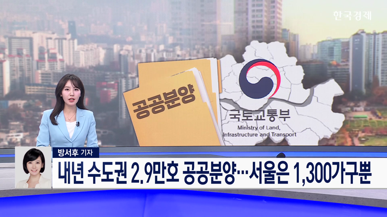 국토교통부는 오늘(26일) 한국토지주택공사(LH)와 서울주택도시개발공사(SH) 등 4개 기관과 함께 내년 수도권 공공택지에서 총 2만9천가구의 공공분양주택을 공급할 계획이라고 밝혔습니다.