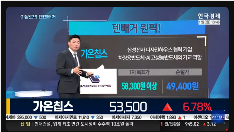 최근 TSMC와의 협업이 어려워지며 삼성전자로 향하는 물량이 증가하고 있어 가온칩스의 역할이 더욱 중요해지고 있다. 이에 따라 가온칩스의 1차 목표가는 5만 8300원, 손절가는 4만 9400원으로 제시되었다.