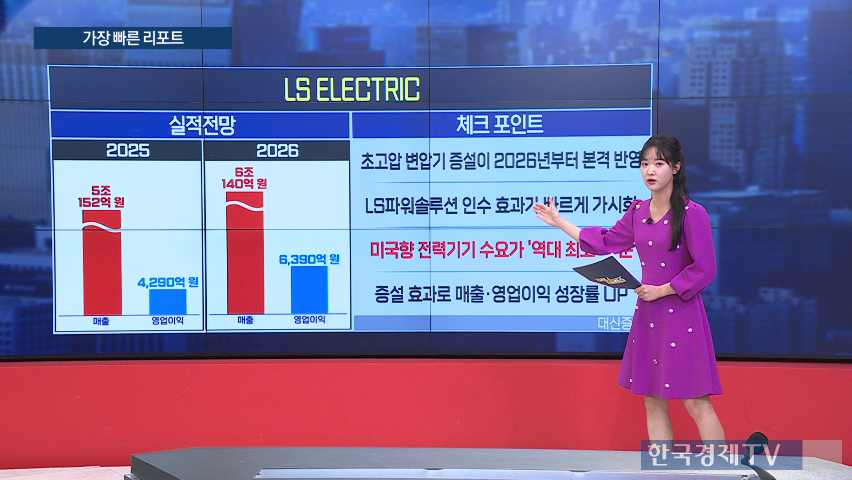 ● LS ELECTRIC · 롯데관광개발 [가장 빠른 리포트] LS ELECTRIC은 초고압 변압기 증설 및 미국 시장 수요 확대로 목표주가가 63만 원으로 설정되었으며, 현재 주가는 43만 원으로 상승 여력 42% 존재합니다. 부산 공장의 매출 능력은 26년 6천억 원으로 작년 대비 3배, 올해 대비 2배 가까이 늘어날 것으로 예상됩니다. 북미향 고부가 제품의 비중 증가로 실제 매출이 설계 용량을 초과할 가능성이 있으며, LS 파워 솔루션 인수로 인한 시너지도 본격화될 전망입니다. 미국 법인의 배전반 생산 능력 역시 올해까지 2.8배 증설되어 내년부터 빅테크 기업 대상 공급이 본격화될 것으로 보이며, 이에 따라 영업 및 매출 이익 성장률이 급격히 높아질 것으로 예상됩니다.