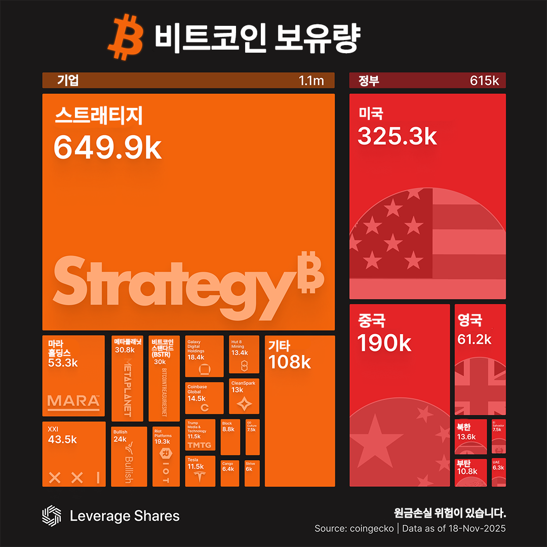 북한, 비트코인 세계 4위 보유국…스트래티지 이은 보유량 2위 기업은 '마라홀딩스' [레버리지셰어즈 인포그래픽]