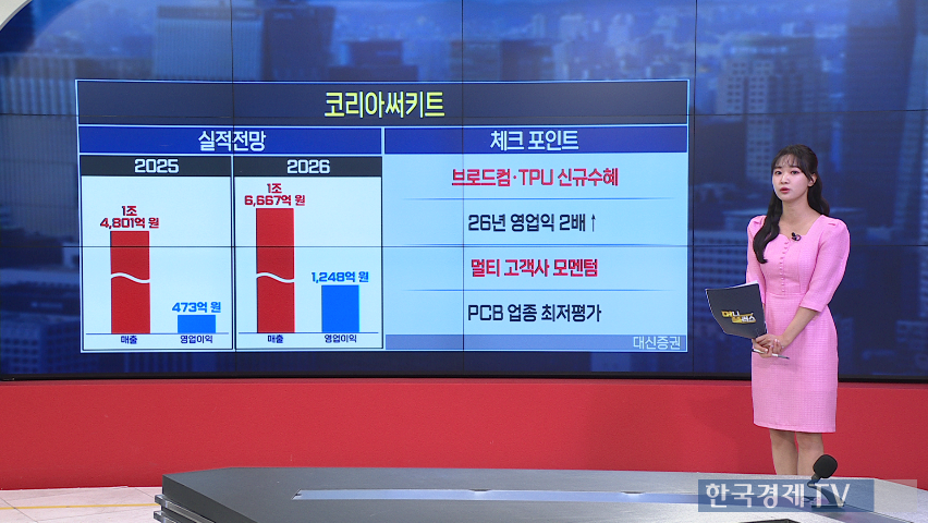 ● 코리아써키트 목표가 '상향' · 파크시스템스 '하향' [가장 빠른 리포트] 코리아써키트는 브로드컴, 엔비디아, 애플 등의 고객 확보로 2026년 PCB 업종 내 저평가된 성장주로 평가되며, 목표가는 5만 5천 원으로 37% 상향 조정되었습니다. FC-BGA 샘플이 브로드컴에 투입되어 테스트 중이며, 긍정적인 결과 시 2026년 하반기부터 신규 매출이 발생할 전망입니다. 연간 영업이익은 올해 473억 원에서 내년에는 1248억 원으로 대폭 개선될 것으로 예상되며, 2026년 PER은 11.5배로 국내 경쟁사에 비해 낮은 편입니다.