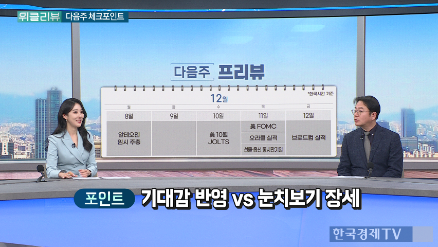 다음 주 미국에서는 오라클과 브로드컴 등의 실적 발표가 예정돼 있으며, 이는 AI 투자 과잉 우려를 잠재울 수 있는 중요한 이벤트로 평가됩니다. FOMC 결과는 금리 인하가 확실시되지만, 내부적 대립과 점도표에서의 내년 인하 폭이 시장의 향방을 가를 변수로 작용할 전망입니다. 한편, 정부는 코스닥 활성화를 위한 정책을 발표할 가능성이 있어, 이에 따라 코스닥 시장에 대한 관심이 증대될 것으로 보입니다.
