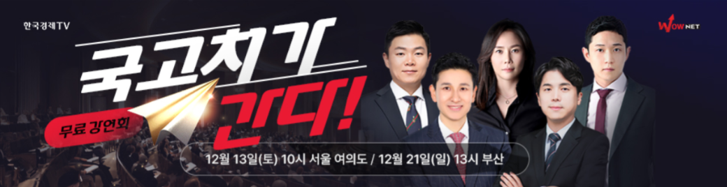 한국경제TV 와우넷은 이러한 시청자의 관심에 보답하고자 오는 12월 13일(토) 오전 10시부터 오후 3시까지 여의도 한국화재보험협회에서 ‘2025 연말결산 국고처 오프라인 강연회’를 진행한다고 밝혔다.