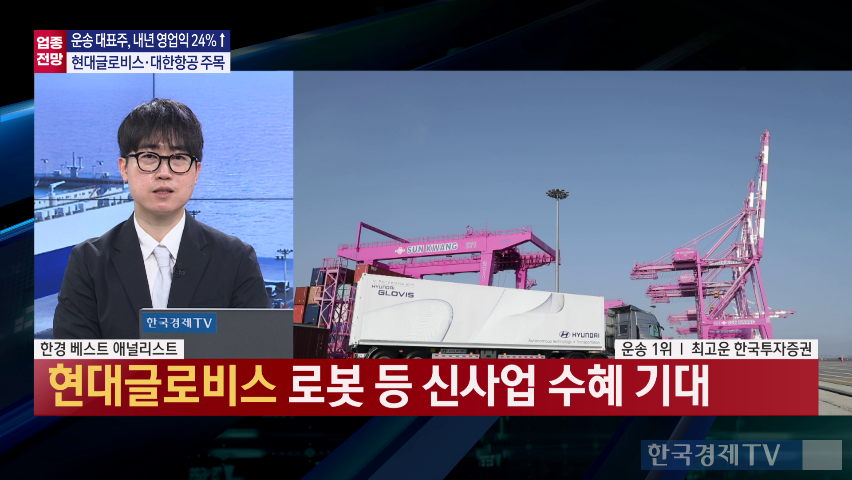 ● "내년 운송업종 실적 개선 기대...현대글로비스 주목" 전문가들은 내년 운송업종 실적 개선을 기대하며, 올해 부진이 기저효과로 작용할 것이라 분석했습니다. 해운 및 육운 분야 실적은 긍정적일 것으로 예상되며, 특히 국내 국적 선사들은 LNG·PCC 등 특수 사업에서 성과가 두드러질 것으로 보입니다.