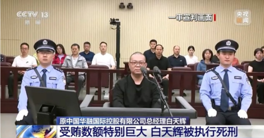 9일 중국중앙TV(CCTV) 보도에 따르면 톈진시 제2중급인민법원은 이날 최고인민법원의 승인에 따라 바이톈후이 전 화룽국제지주회사 회장에 대한 사형을 집행했다.