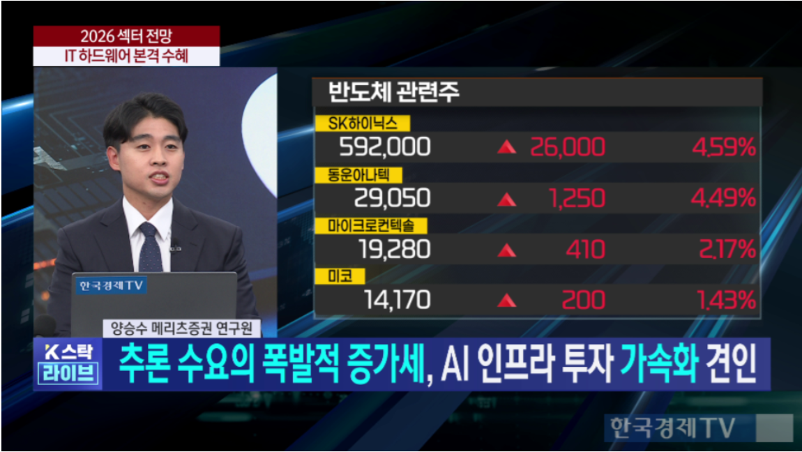 양 연구원은 "올해 처음 본격적으로 부각된 소버린 AI 트렌드도 중요한 축"이라며 "미·중 중심이던 투자가 앞으로는 중동과 한국을 포함한 아시아 지역으로 확산되면서 데이터센터 투자가 크게 늘 것"이라고 전망했다.