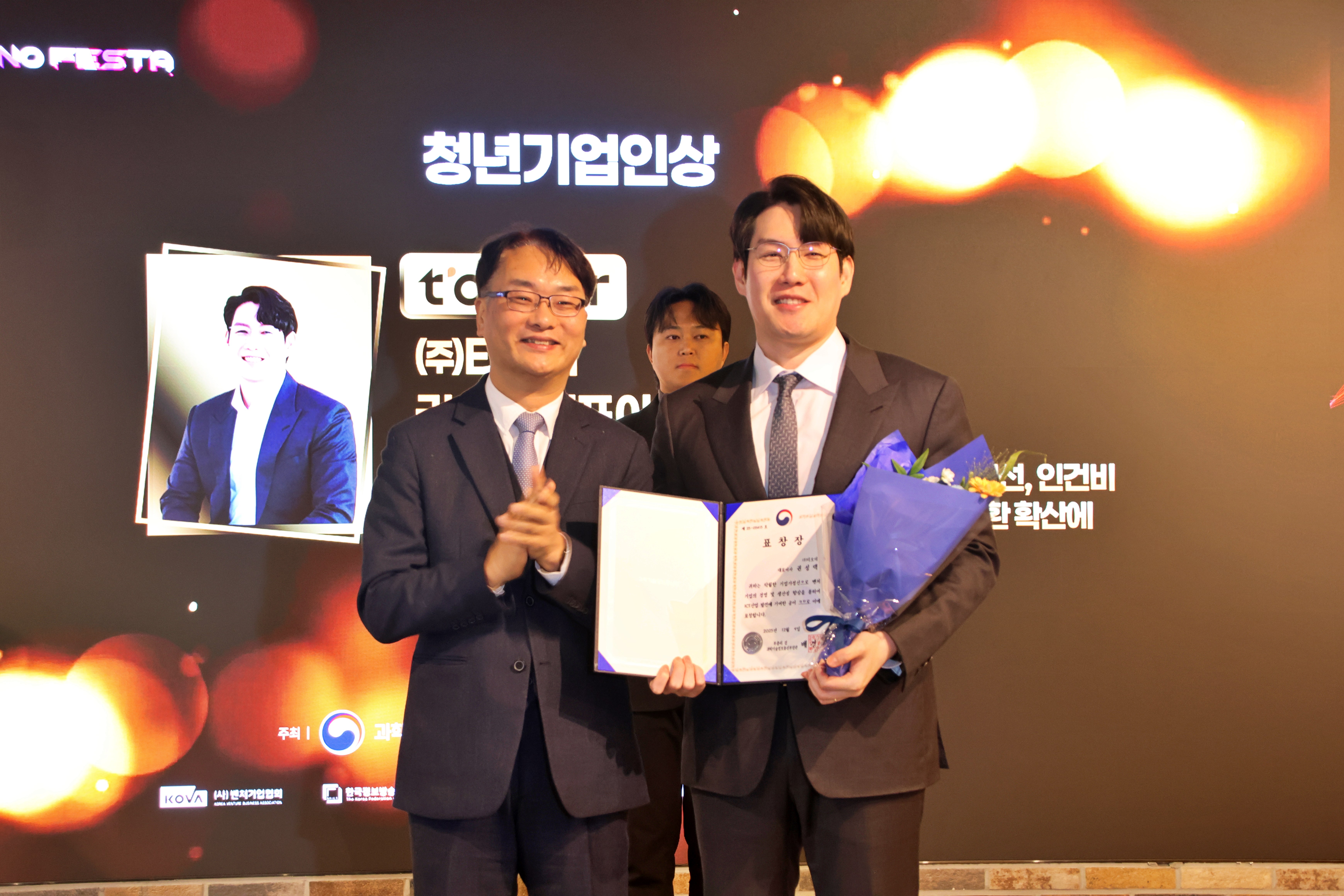 디지털 이노페스타 행사의 첫 순서로 진행된 ‘ICT 공로자 시상식’은 한 해 정보통신 스타트업의 진흥 성과를 공유하는 행사로, 매년 혁신 성과를 보인 기업과 청년 기업인을 선정해 수상하고 있다. 이를 통해 AI·디지털 전환 분야 스타트업의 성장과 산업 생태계 발전에 기여한 기업을 발굴하고 있다. 그 중 ‘청년기업인상’은 우수한 성과를 보유하고 국가 산업 발전에 기여한 만 39세 이하 ICT 기업 대표를 대상으로 수여하고 있으며, ICT 기술력과 혁신성, 산업 기여도를 종합 평가해 수상자를 선정한다.