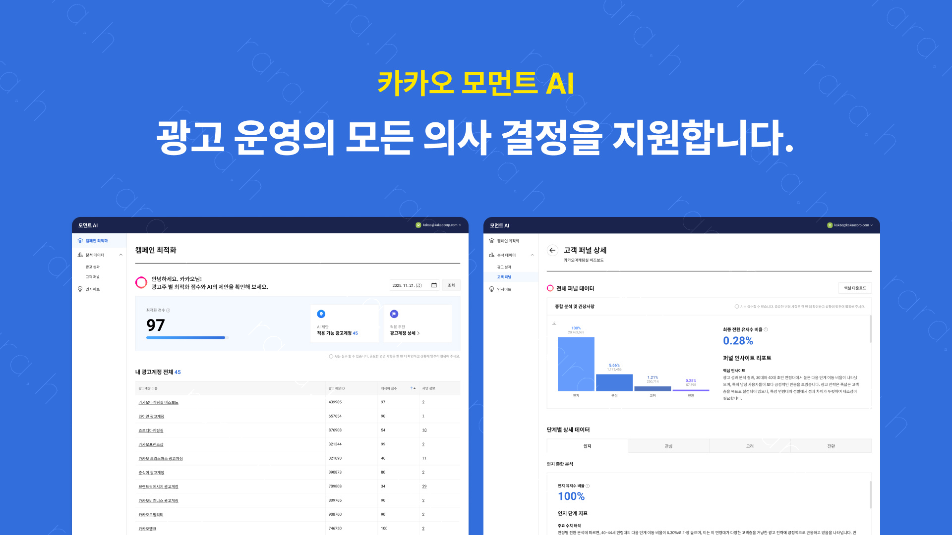 카카오모먼트 AI는 광고 데이터를 해석하고 운영 방향을 제안하는 기능을 제공해 자영업자와 중소상공인의 광고 집행 효율을 높이기 위한 서비스다.